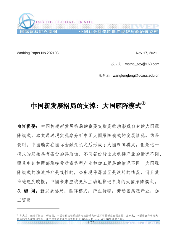 【中国社科院】【20211117】中国新发展格局的支撑:大国雁阵模式-26页