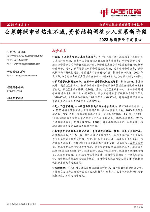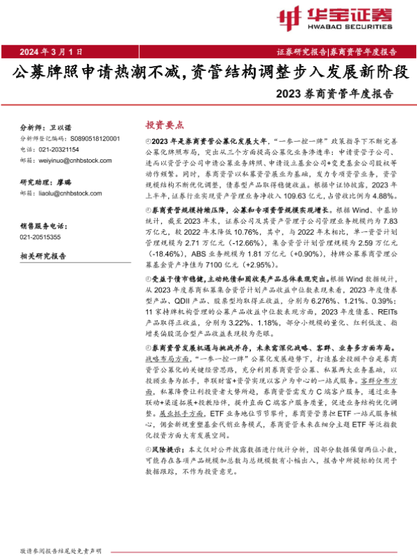 【华宝证券】【20240301】2023券商资管年度报告:公募牌照申请热潮不减,资管结构调整步入发展新阶段-21页