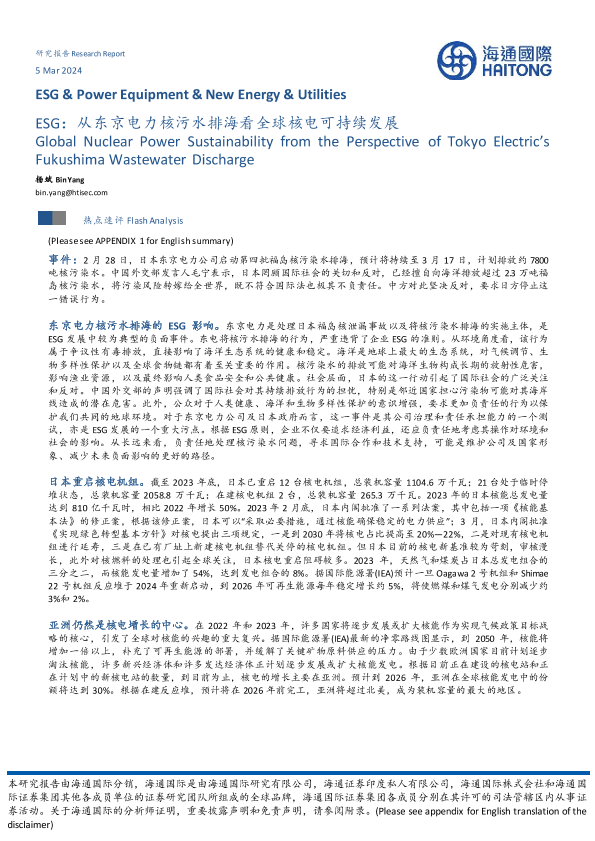 【海通国际】【20240305】ESG:从东京电力核污水排海看全球核电可持续发展-12页