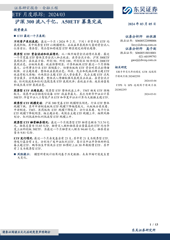 【东吴证券】【20240305】ETF月度跟踪:沪深300流入千亿,A50ETF募集完成-13页