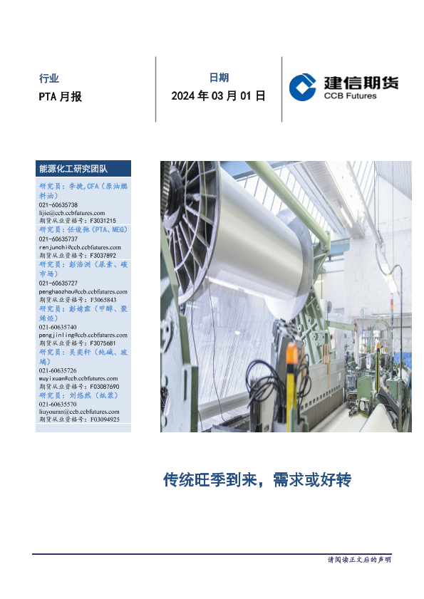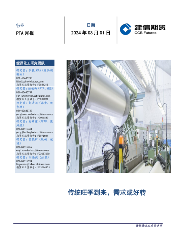 【建信期货】【20240301】PTA月报:传统旺季到来,需求或好转-11页