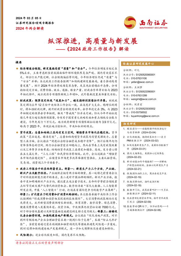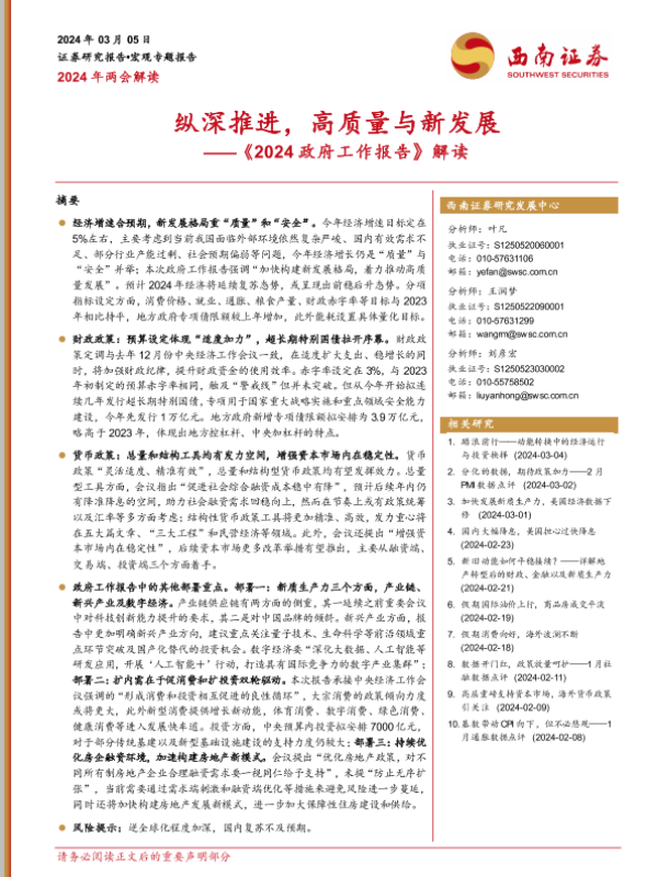 【西南证券】【20240305】《2024政府工作报告》解读:纵深推进,高质量与新发展-11页