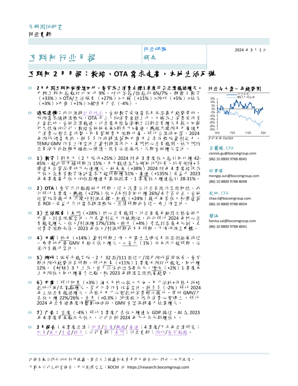 【交银国际】【20240301】互联网2月月报:教培、OTA需求走高,本地生活反弹-12页