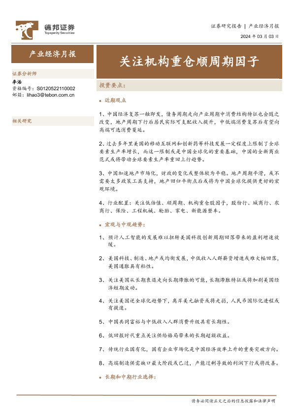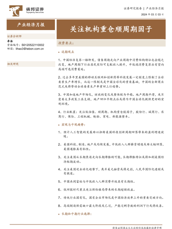 【德邦证券】【20240303】产业经济月报:关注机构重仓顺周期因子-14页