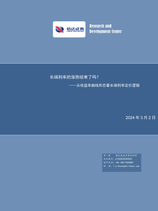 【信达证券】【20240302】从收益率曲线形态看长端利率定价逻辑:长端利率的涨势结束了吗?-21页