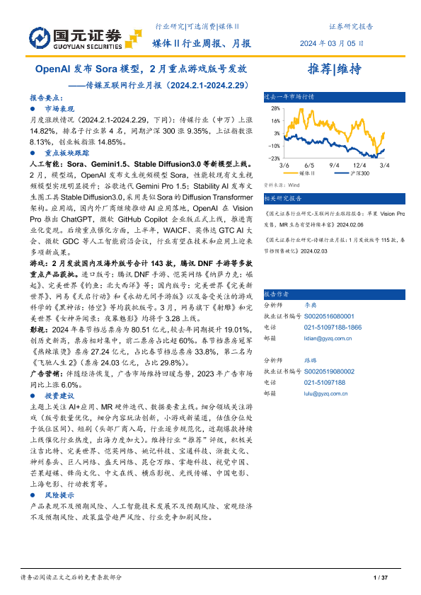 【国元证券】【20240305】传媒互联网行业月报:OpenAI发布Sora模型,2月重点游戏版号发放-37页