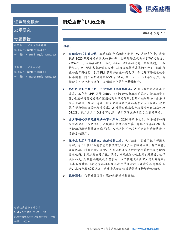 【信达证券】【20240302】制造业部门大致企稳-10页