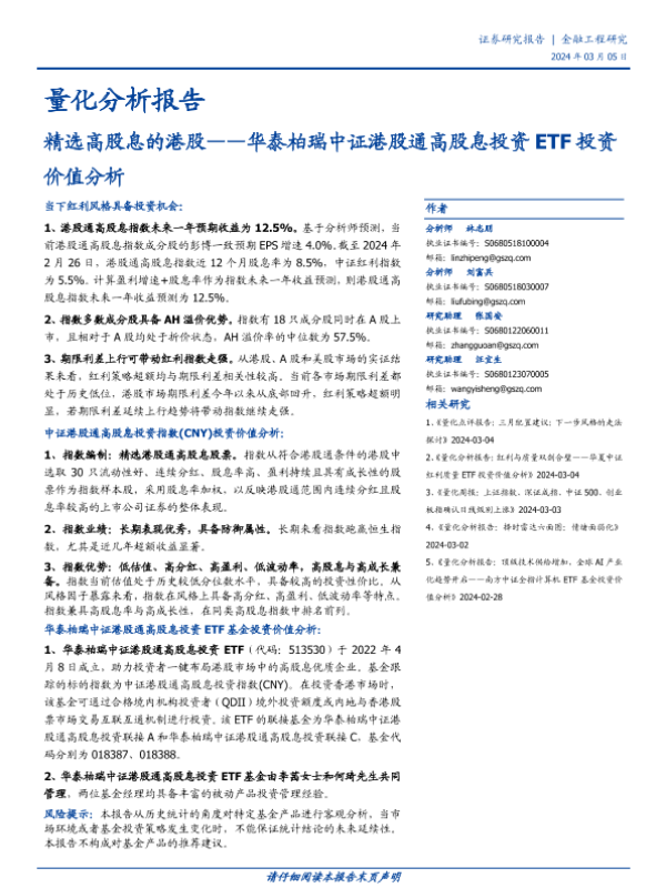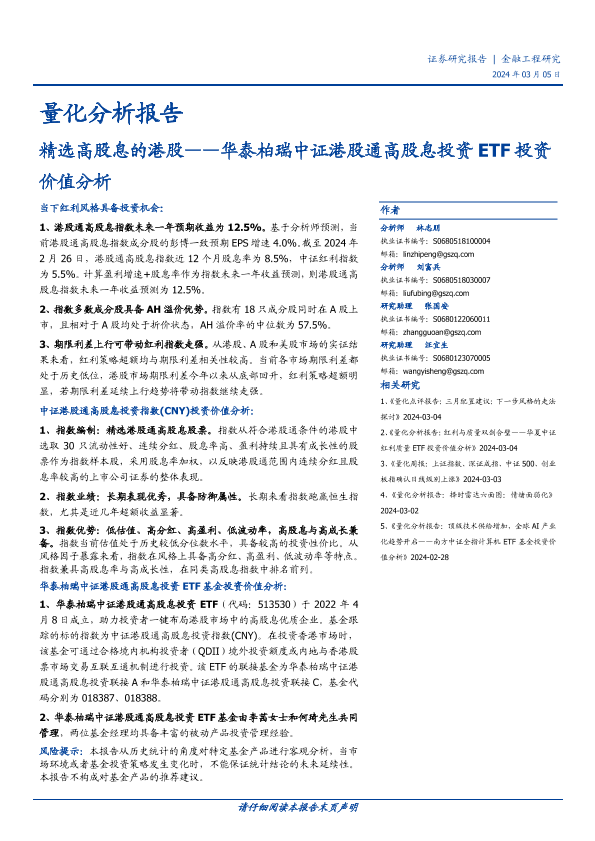 【国盛证券】【20240305】华泰柏瑞中证港股通高股息投资ETF投资价值分析:精选高股息的港股-17页