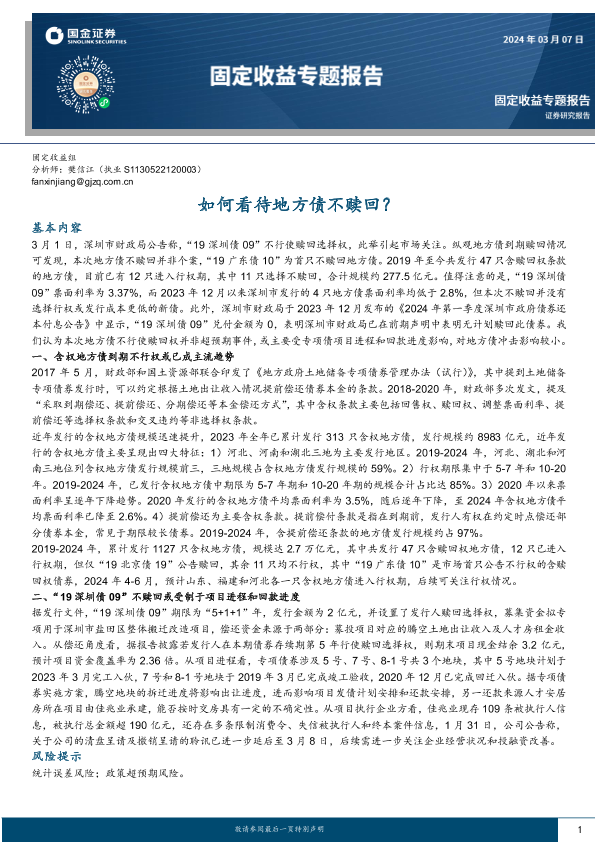 【国金证券】【20240307】固定收益专题报告:如何看待地方债不赎回?-16页