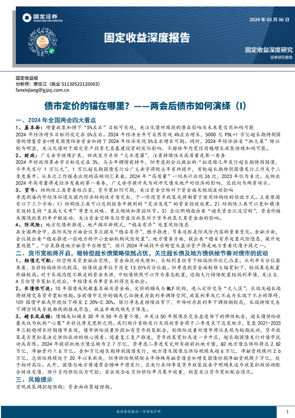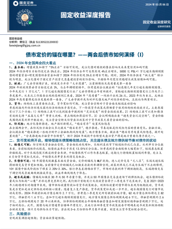 【国金证券】【20240306】固定收益深度报告:两会后债市如何演绎(I)-债市定价的锚在哪里?-13页