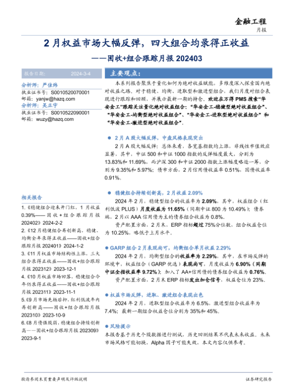 【华安证券】【20240304】固收+组合跟踪月报:2月权益市场大幅反弹,四大组合均录得正收益-15页