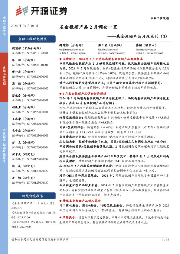 【开源证券】【20240304】基金投顾产品月报系列(3):基金投顾产品2月调仓一览-14页