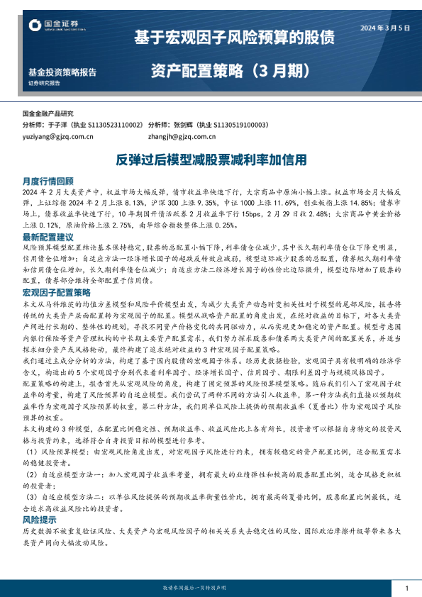 【国金证券】【20240305】基于宏观因子风险预算的股债资产配置策略(3月期):反弹过后模型减股票减利率加信用-12页