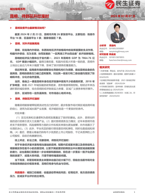 【民生证券】【20240307】城投随笔系列:昆明,待到花开烂漫时-21页