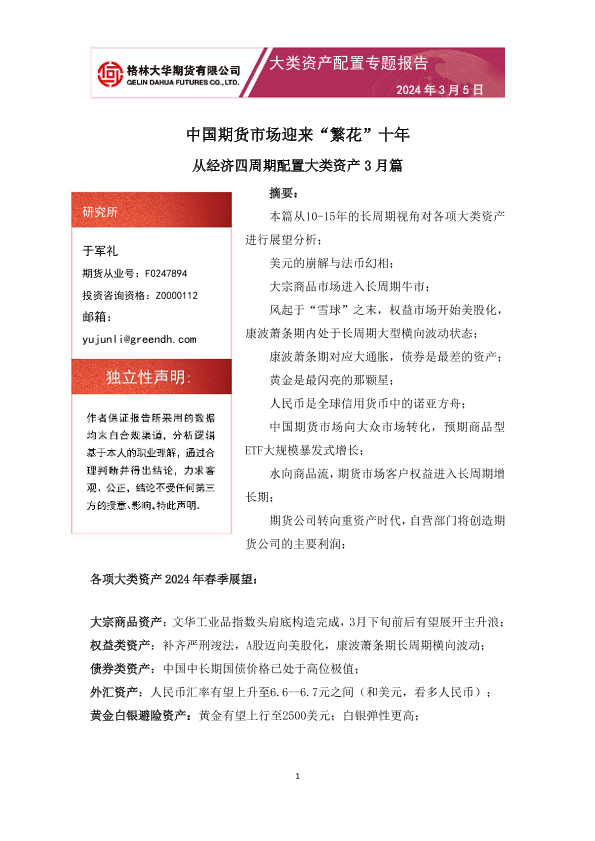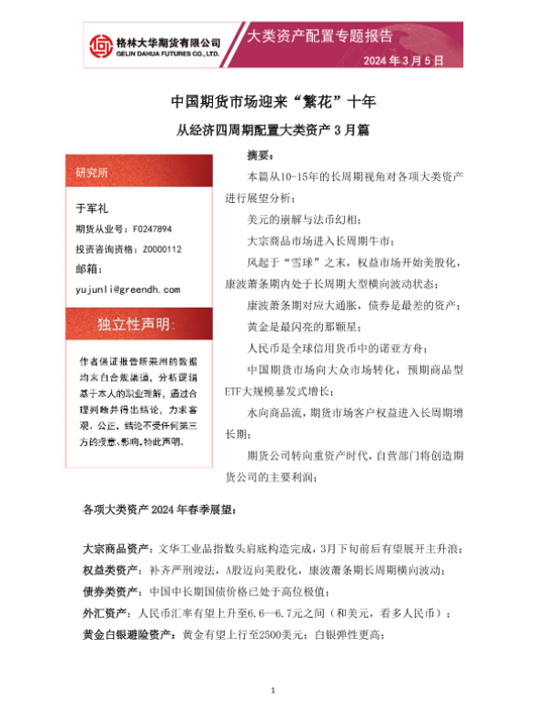 【格林大华期货】【20240305】大类资产配置专题报告:从经济四周期配置大类资产3月篇 中国期货市场迎来“繁花”十年-16页