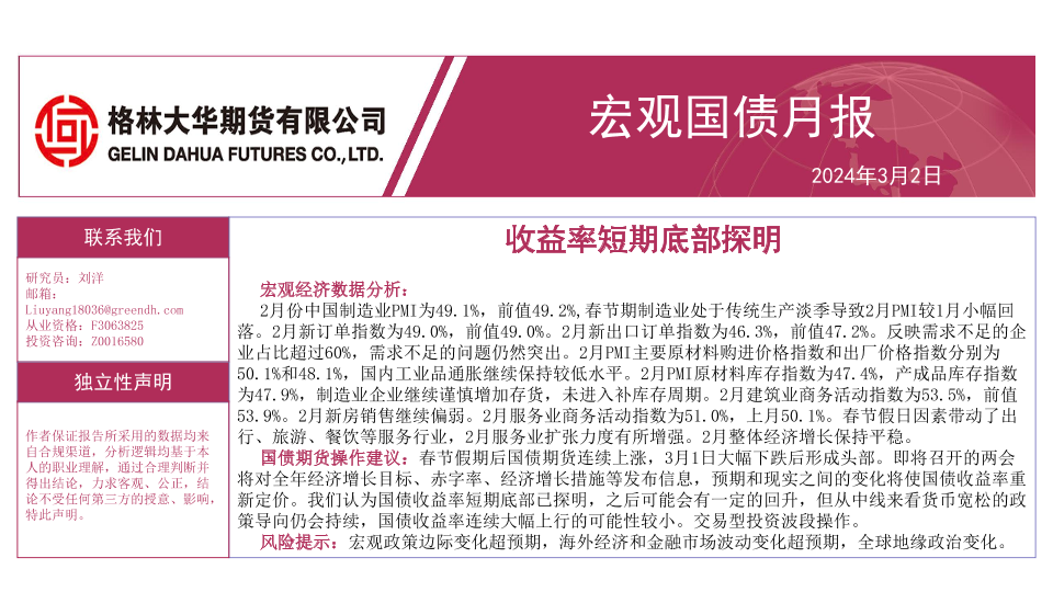 【格林大华期货】【20240302】宏观国债月报:收益率短期底部探明-28页
