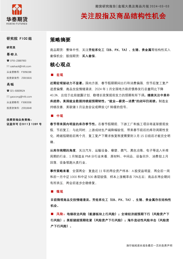 【华泰期货】【20240303】宏观大类及商品月报:关注股指及商品结构性机会-25页