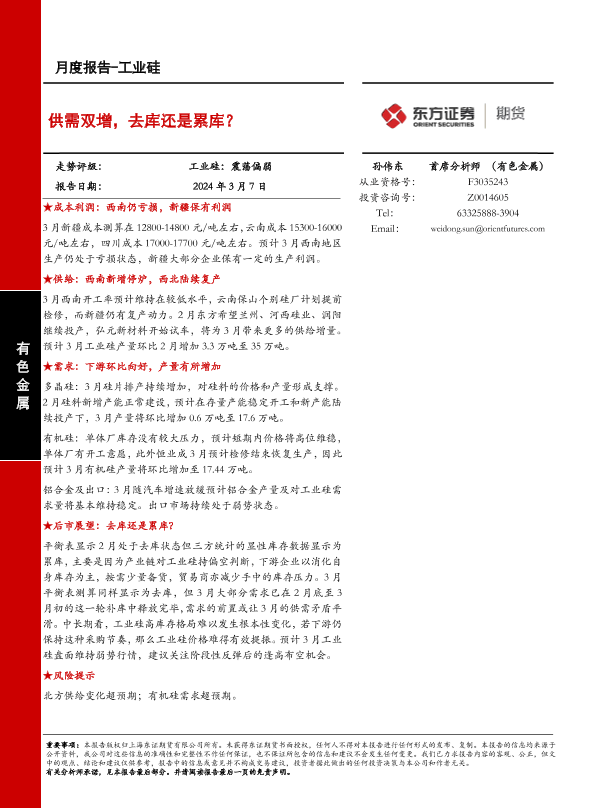 【东证期货】【20240307】工业硅月度报告:供需双增,去库还是累库?-15页