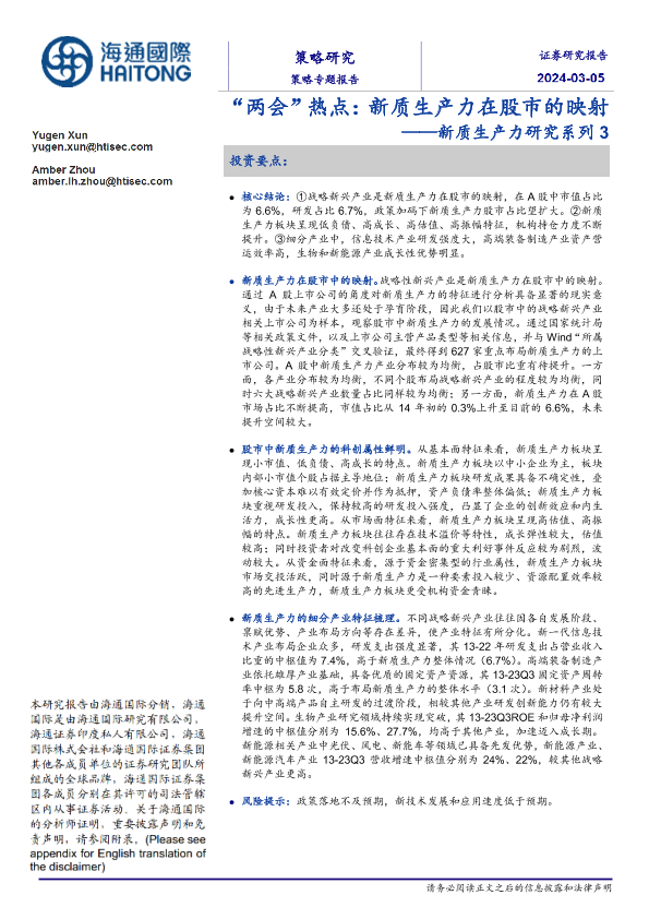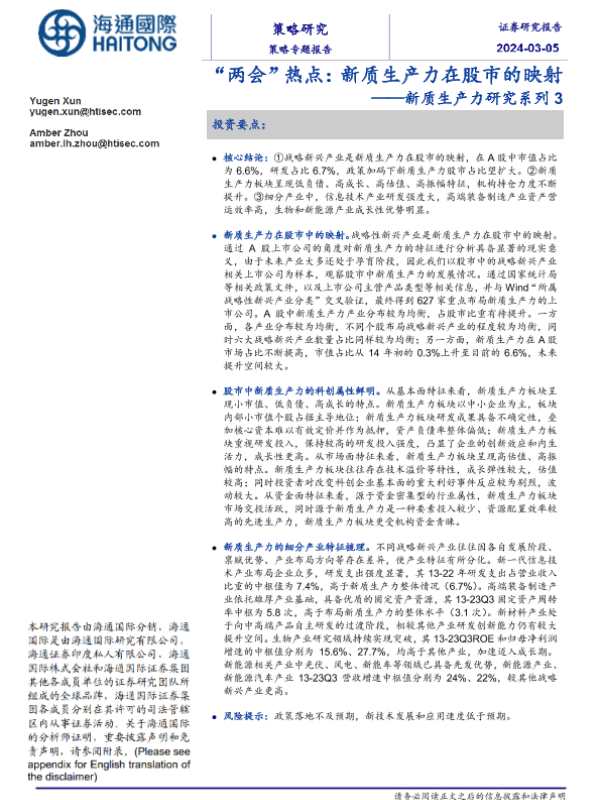 【海通国际】【20240305】新质生产力研究系列3:“两会”热点,新质生产力在股市的映射-17页