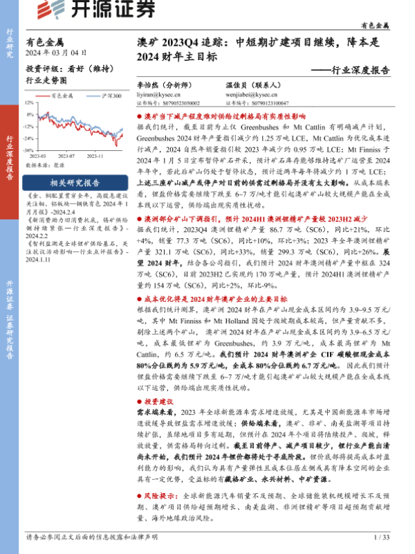 【开源证券】【20240304】澳矿2023Q4追踪:中短期扩建项目继续,降本是2024财年主目标-33页