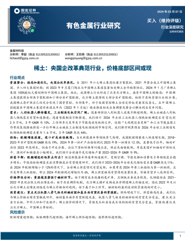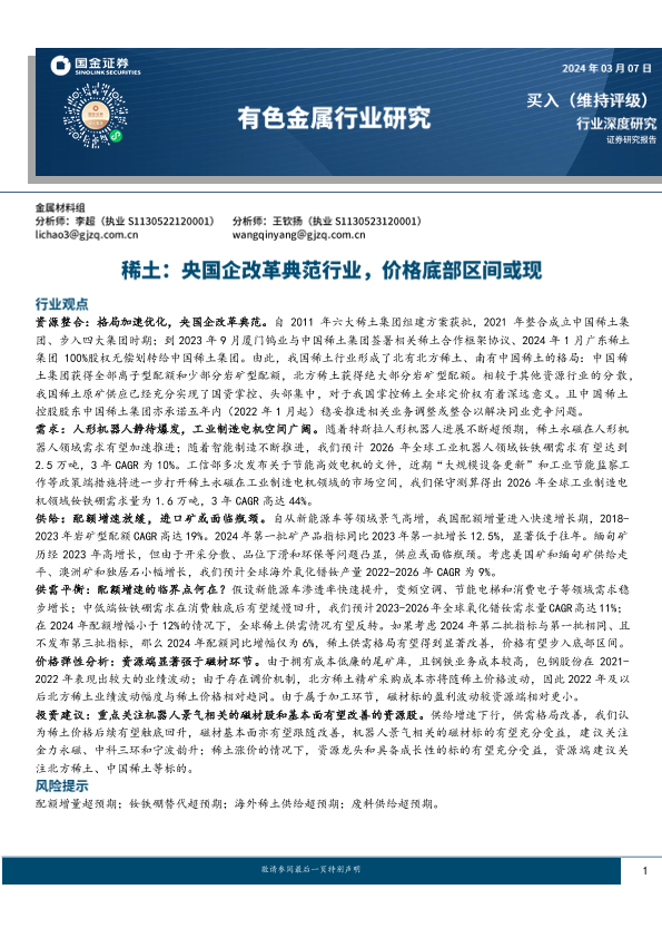 【国金证券】【20240307】有色金属行业研究-稀土:央国企改革典范行业,价格底部区间或现-34页