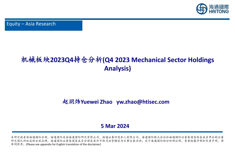 【海通国际】【20240305】机械行业板块2023Q4持仓分析-29页