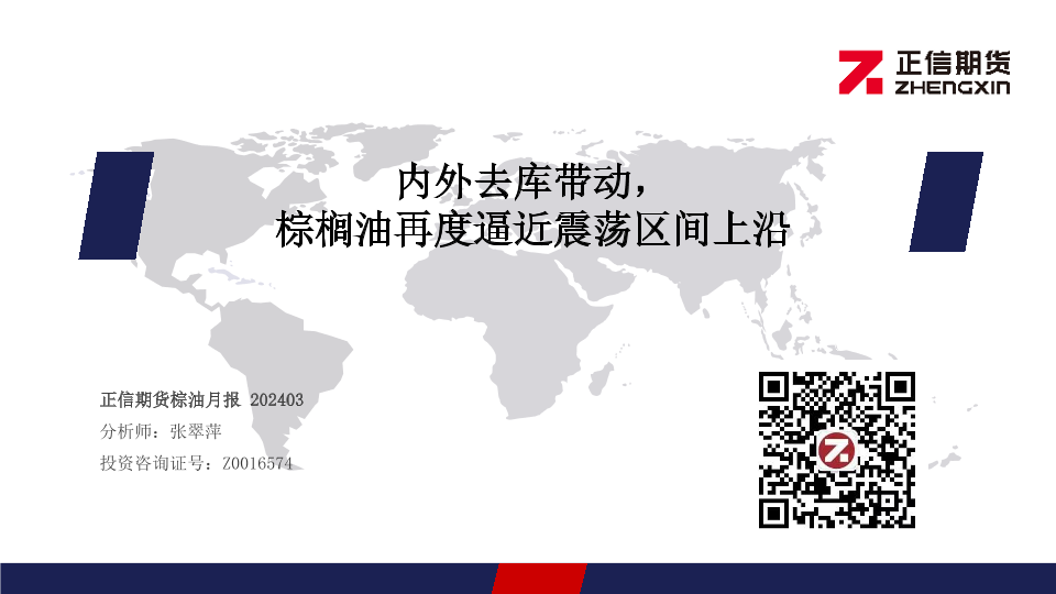 【正信期货】【20240303】棕油月报:内外去库带动,棕榈油再度逼近震荡区间上沿-23页