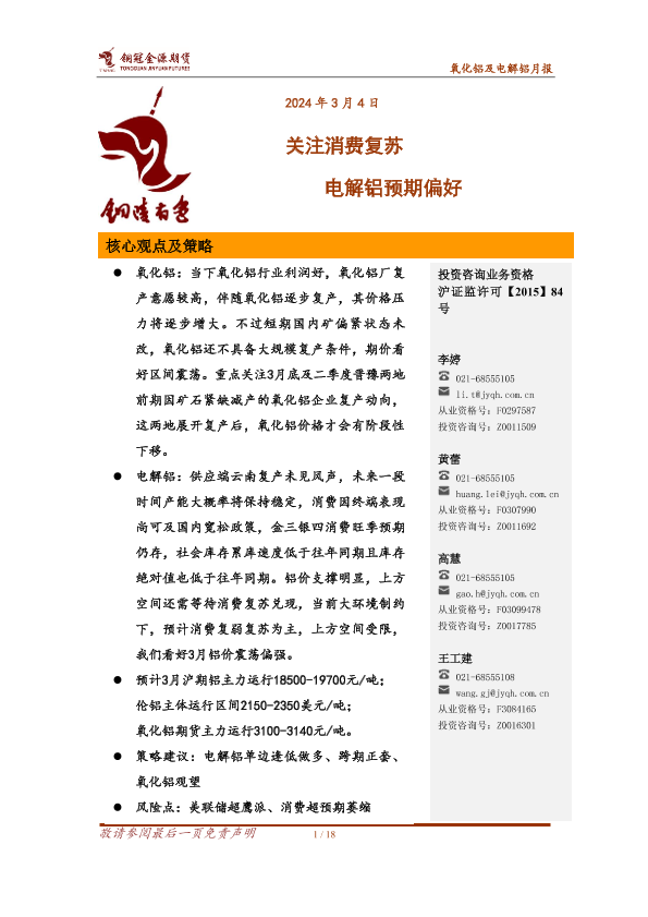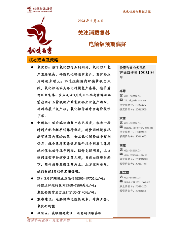 【金源期货】【20240304】氧化铝及电解铝月报:关注消费复苏 电解铝预期偏好-18页