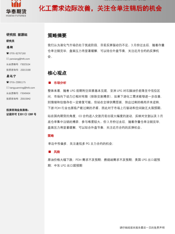 【华泰期货】【20240303】液化石油气月报:化工需求边际改善,关注仓单注销后的机会-10页