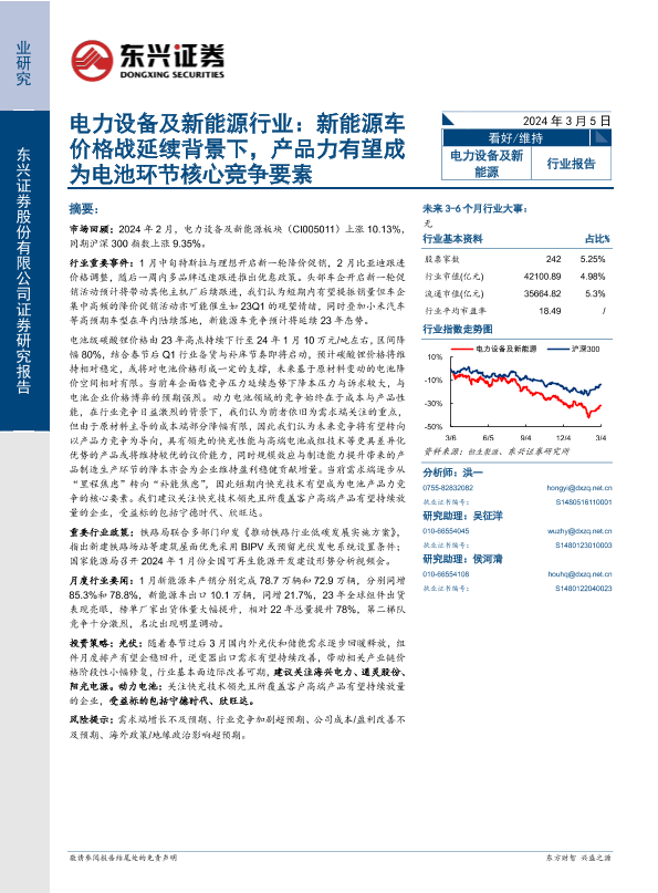 【东兴证券】【20240305】电力设备及新能源行业报告:新能源车价格战延续背景下,产品力有望成为电池环节核心竞争要素-18页