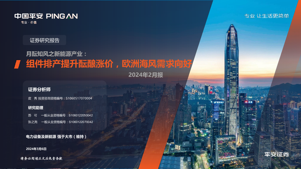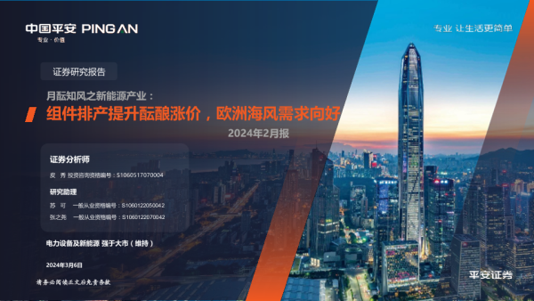 【平安证券】【20240306】电力设备及新能源行业-月酝知风之新能源产业:组件排产提升酝酿涨价,欧洲海风需求向好-24页