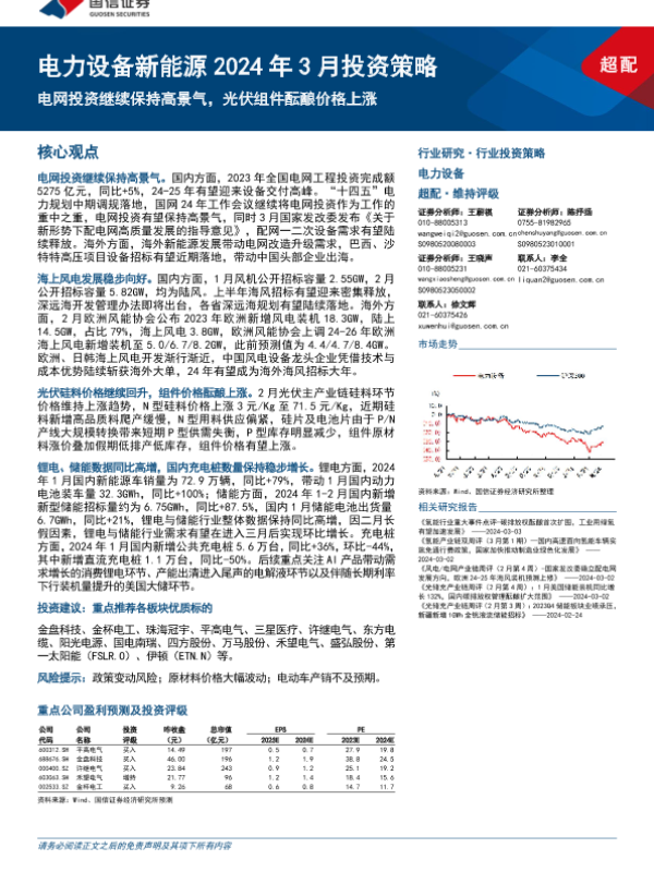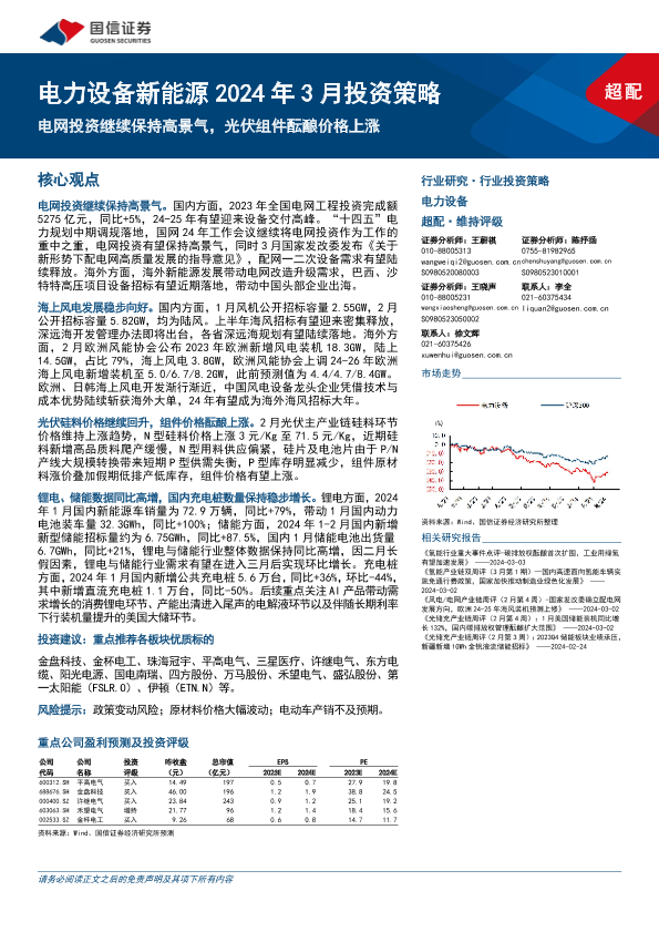 【国信证券】【20240306】电力设备新能源2024年3月投资策略:电网投资继续保持高景气,光伏组件酝酿价格上涨-22页