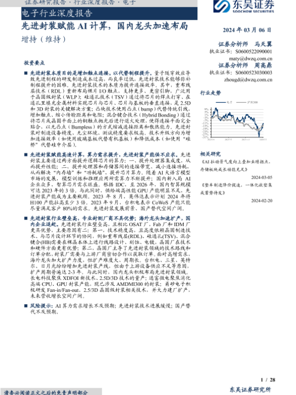 【东吴证券】【20240306】电子行业深度报告:先进封装赋能AI计算,国内龙头加速布局-28页
