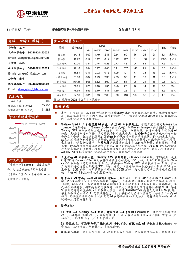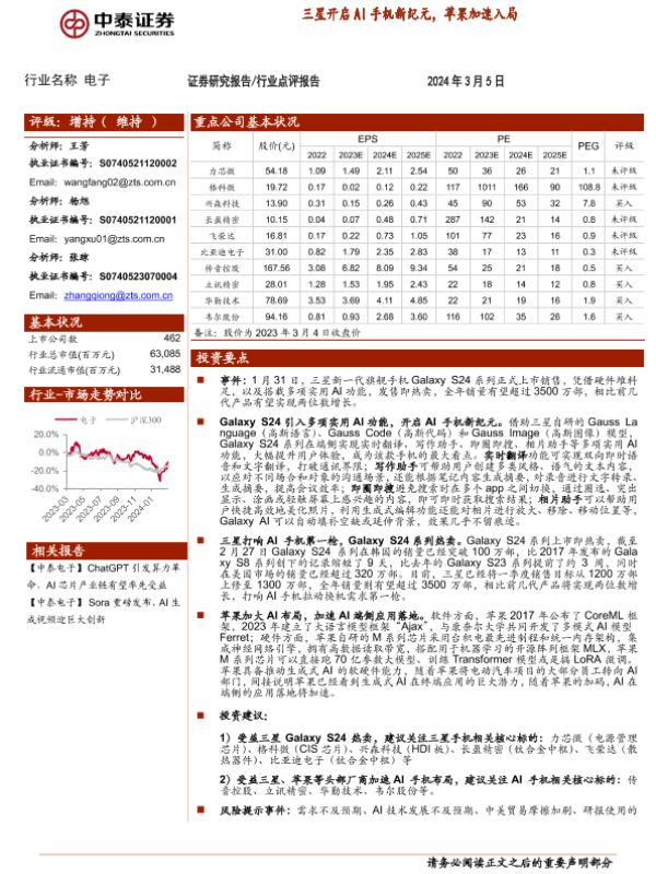 【中泰证券】【20240305】电子行业:三星开启AI手机新纪元,苹果加速入局-15页