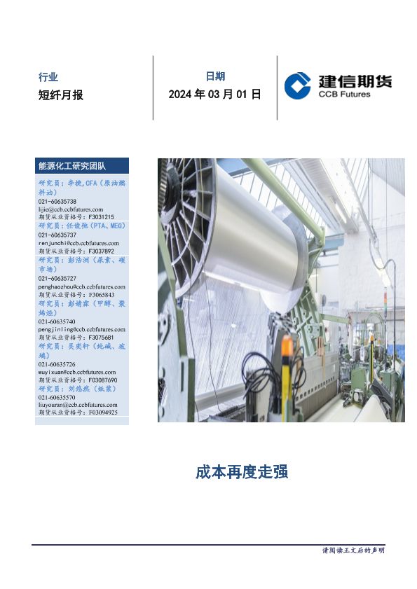【建信期货】【20240301】短纤月报:成本再度走强-12页