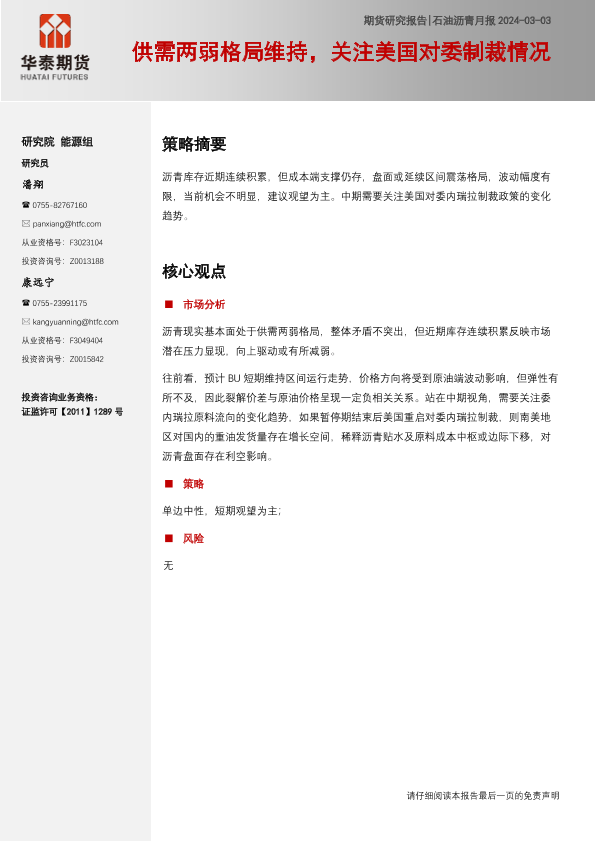 【华泰期货】【20240303】石油沥青月报:供需两弱格局维持,关注美国对委制裁情况-10页