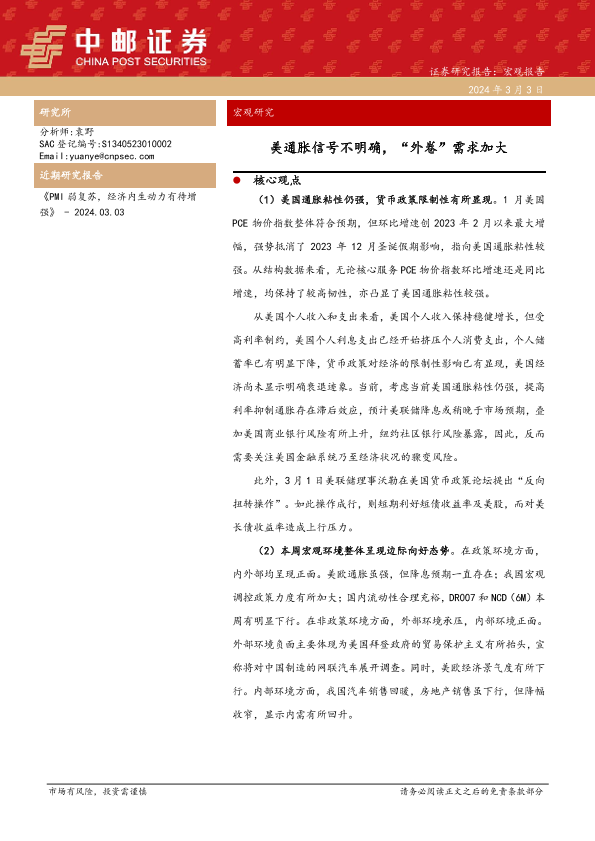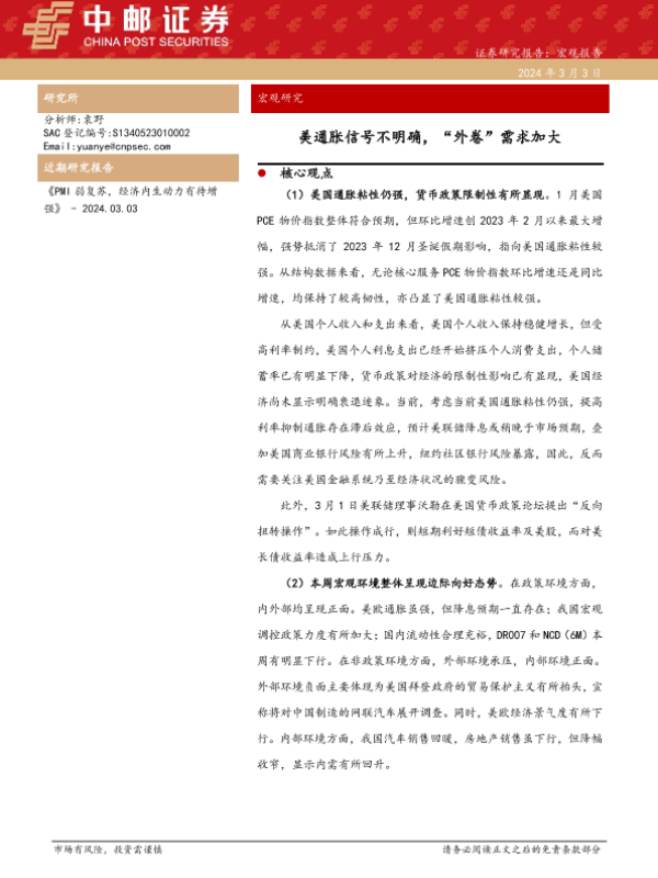 【中邮证券】【20240303】美通胀信号不明确,“外卷”需求加大-27页