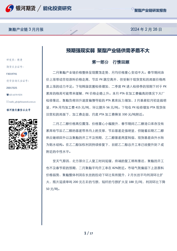 【银河期货】【20240228】聚酯产业链3月月报:预期强现实弱 聚酯产业链供需矛盾不大-17页
