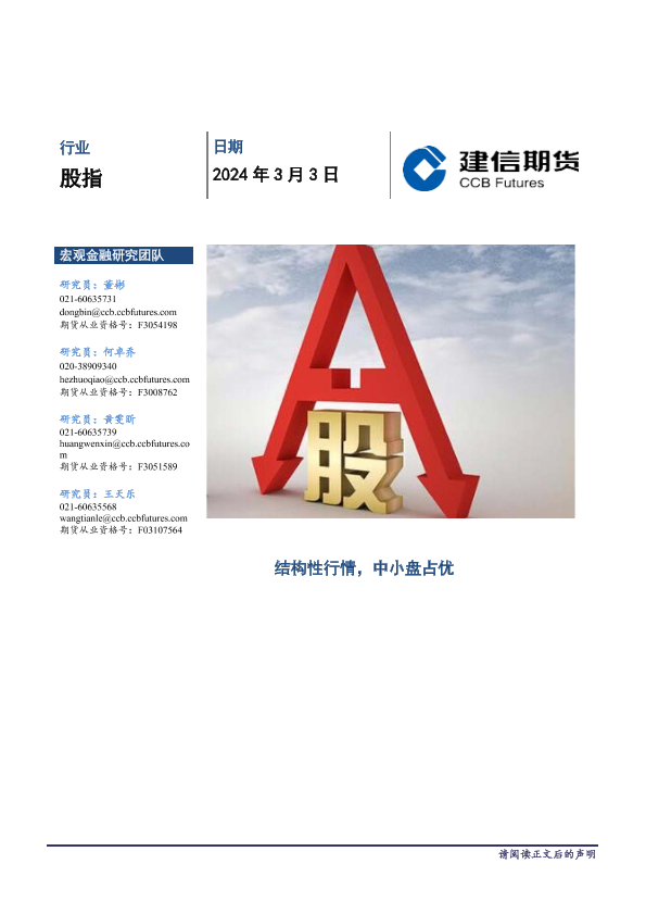 【建信期货】【20240303】股指月报:结构性行情,中小盘占优-12页