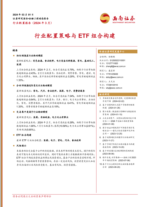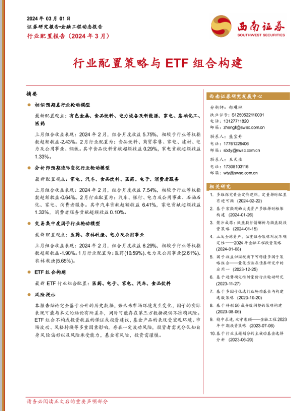 【西南证券】【20240301】行业配置报告(2024年3月):行业配置策略与ETF组合构建-16页
