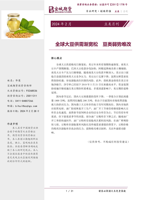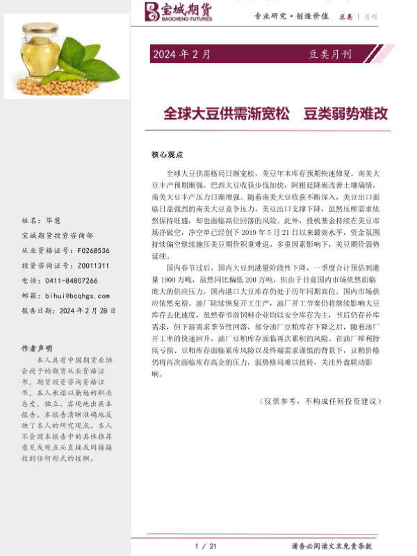 【宝城期货】【20240228】豆类月刊:全球大豆供需渐宽松 豆类弱势难改-21页