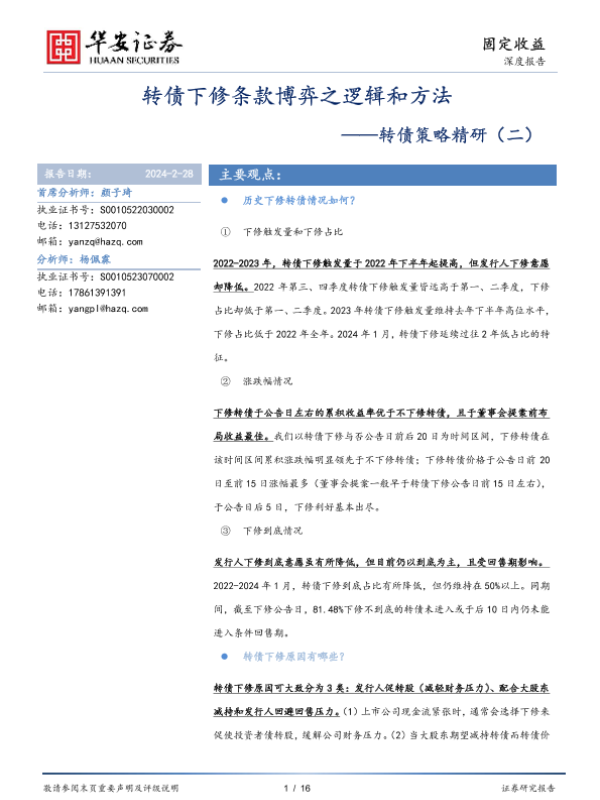 【华安证券】【20240228】转债策略精研(二):转债下修条款博弈之逻辑和方法-16页