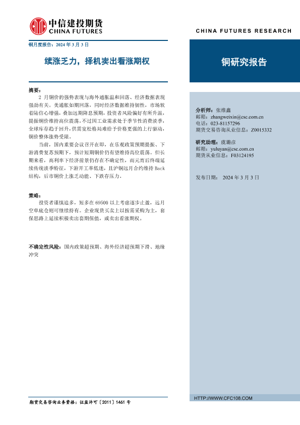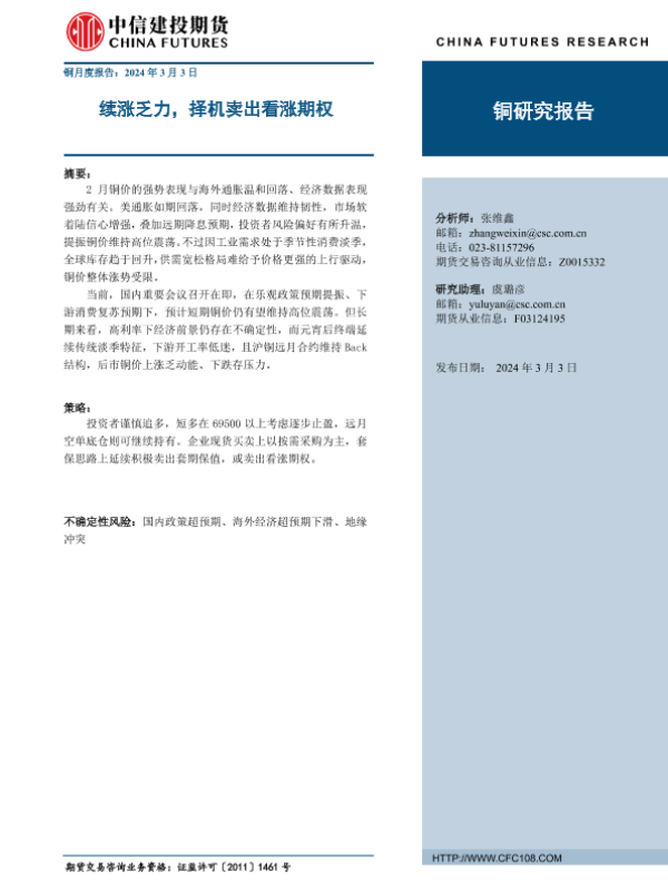 【中信建投期货】【20240303】铜月度报告:续涨乏力,择机卖出看涨期权-16页