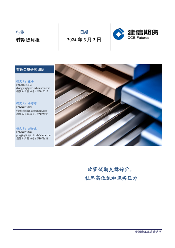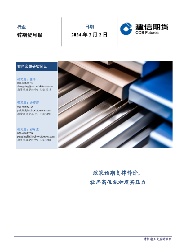 【建信期货】【20240302】锌期货月报:政策预期支撑锌价,社库高位施加现实压力-14页