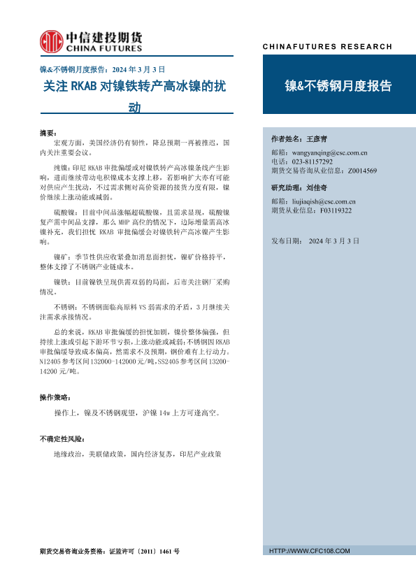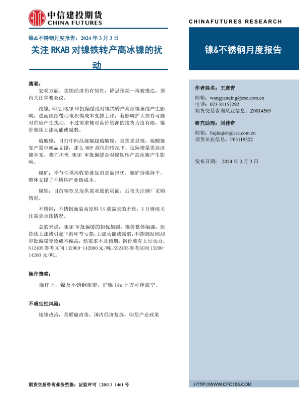 【中信建投期货】【20240303】镍&不锈钢月度报告:关注RKAB对镍铁转产高冰镍的扰动-12页