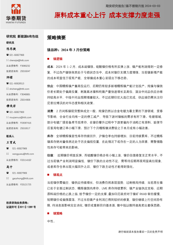 【华泰期货】【20240303】镍不锈钢月报:原料成本重心上行 成本支撑力度走强-36页