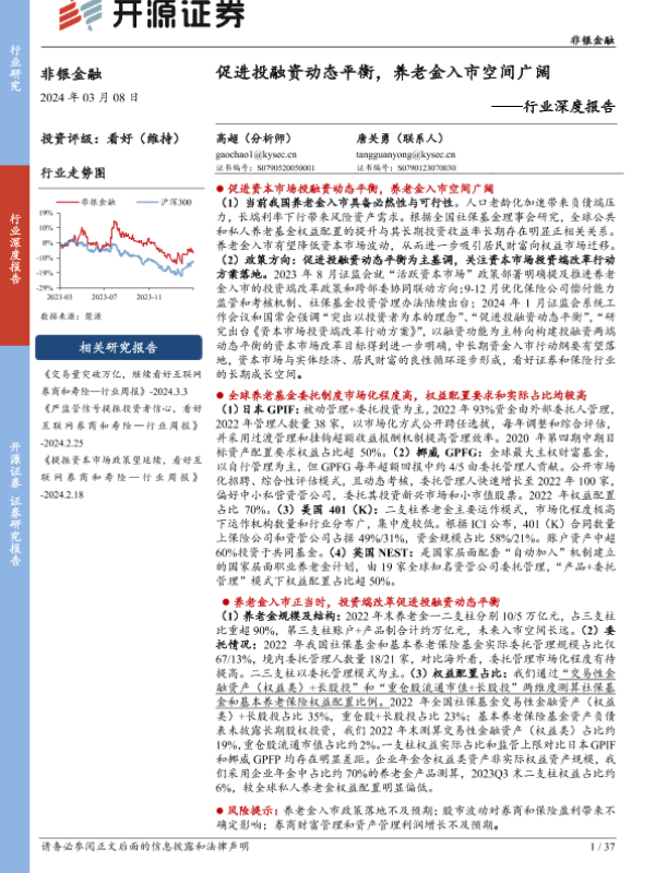 【开源证券】【20240308】非银金融行业深度报告:促进投融资动态平衡,养老金入市空间广阔-37页
