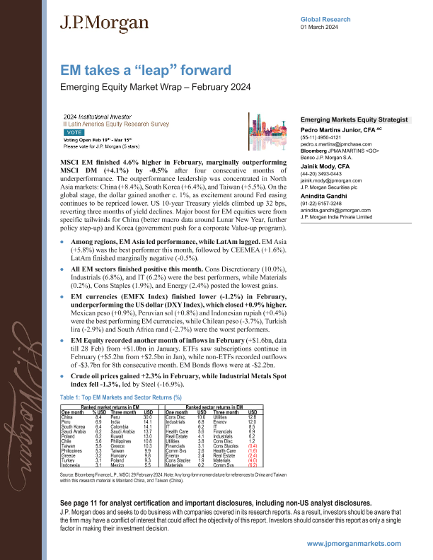 【J.P. Morgan】【20240301】JPMorgan-EM takes a 'leap' forward Emerging Equity Market Wrap – February 2024-15页