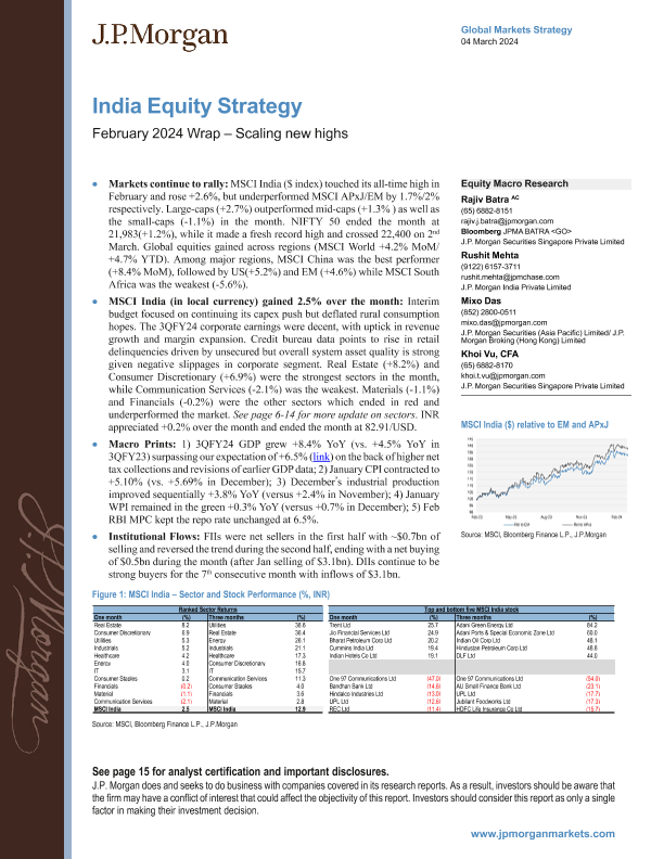 【J.P. Morgan】【20240201】JPMorgan-India Equity Strategy February 2024 Wrap – Scaling new highs-19页