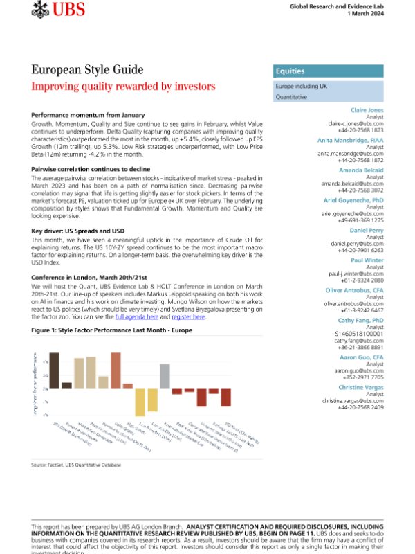 【UBS AG London Branch】【20240301】European Style Guide Improving quality rewarded by investors-13页